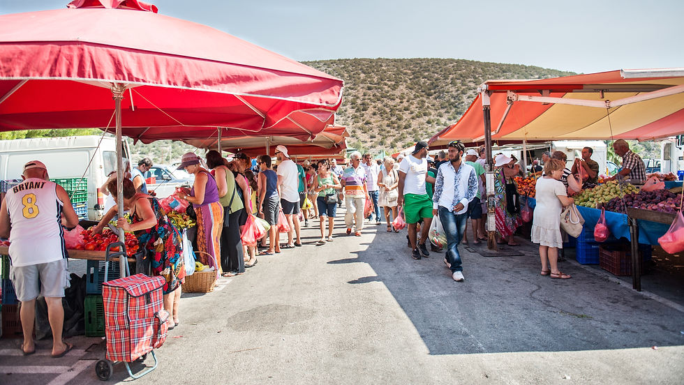 Η αγορά της Ερμιόνης με τα μαγαζιά για τα ψώνια σας και τις δημόσιες υπηρεσίες απλώνεται κυρίως κατά το μήκος της ακτογραμμής της στη βόρεια πλευρά της, ενώ ελάχιστα καταστήματα συναντάει κανείς μέσα στα σοκάκια της.